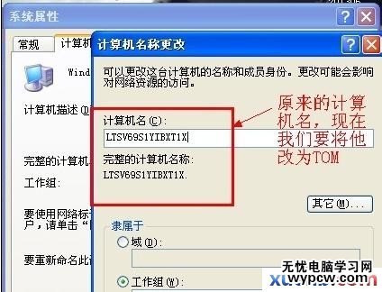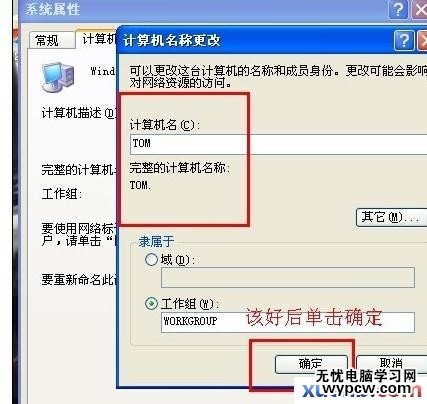 點擊“更改”按鈕,跳出一個“計算機名稱更改”的窗口,將原來的計算機名稱刪除,輸入我們要更改的名稱,更改好,單擊“確定”