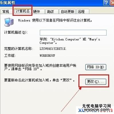 跳出一個“系統屬性”的窗口中,選擇“計算機名”這一欄,我們的查看到完整的計算機名稱,然后點擊“更改”按鈕,我們要把原來的計算機名更改為適合自己的名字。