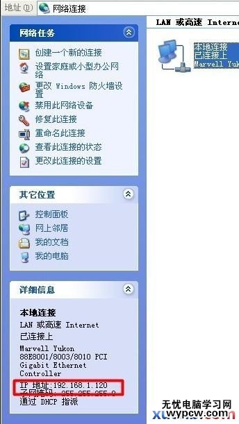 在公司里大部分人用的都是自動獲得IP地址,所以不需要去查看TCP/IP協議,選中本地連接,在窗口的左下方有詳細信息,可以看到自己的內網IP。記住它。