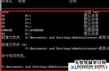 在CMD模式下輸入命?a target="_blank" class="infotextkey">.net SHARE,等待命令完成就可以看到共享的文件或者文件夾了。