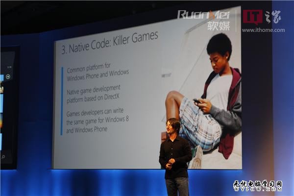 基于DirectX的原生代碼支持,程序開發者使用同一套代碼開發的游戲可以同時運行在Windows Phone 8 和 Windows 8里;現場展示的一款迷宮游戲同時兼容桌面系統Win8以及移動操作系統WP8,而對于開發者來說,只需要稍微改動一下代碼即可。