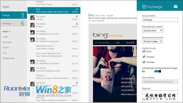 在開始設計Win8郵件體驗之初,微軟就下定決心要秉承Metro樣式設計原則創建一個郵件應用。新郵件應用在觸控和鍵鼠操作下都必須做到快速流暢,讓用戶專注與內容,在正確時間提供正確的功能,并同現代設備完美結合。