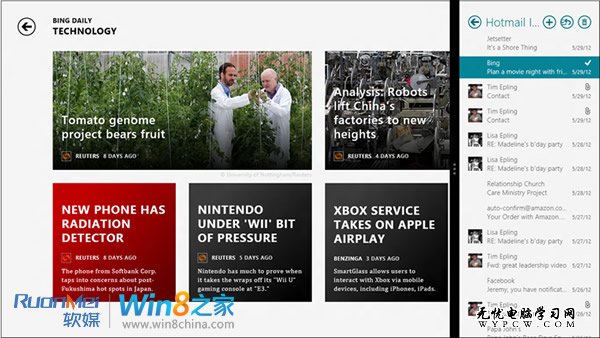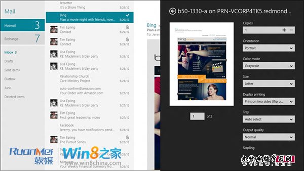 以借助“共享”Charm菜單,將喜愛的內容通過郵件分享給朋友: