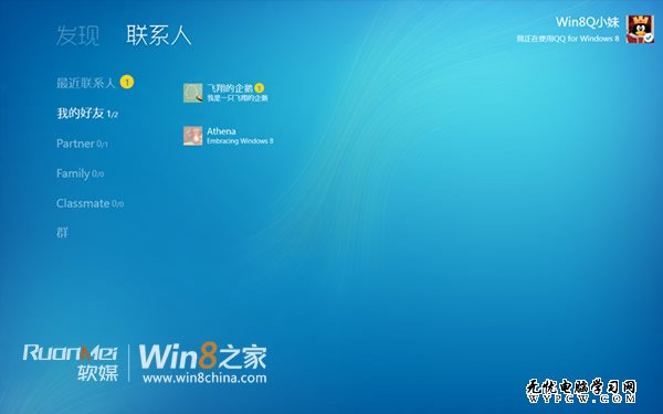 QQ for Windows 8 預覽版是專門為Windows 8 Metro模式量身打造的QQ客戶端,在設計上充分利用了Metro UI 和平板設備觸摸操作的特點,是為廣大Windows 8 用戶提供的SNS工具!