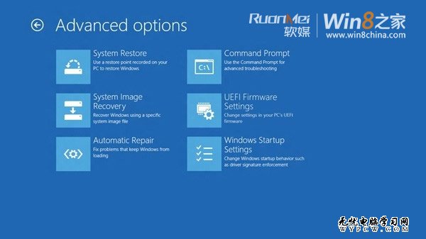 在所有Win8設備中,無論支持UEFI與否,都將擁有下面截圖中的功能選項:Windows 啟動設置。