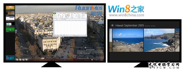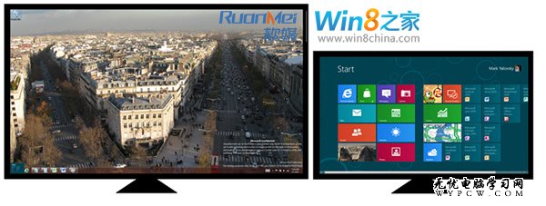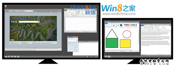 就Win8對多顯示器的增加性功能支持,下面帶來詳細的圖文解讀(觀看演示視頻:見《微軟演示Win8 RP對多顯示器的增強性支持》):
