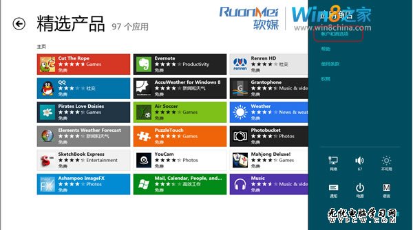 其實,想找到Win8QQ和人人網Win8客戶端,最簡單的就是Win8商店中搜索“QQ”、“人人”的字眼即可。若這樣還找不到這倆中國產的社交應用,你可能需要排查下Win8系統的地域設置,或者在Win8商店的設置中,檢查下“賬戶和首選項”的設置。