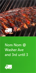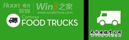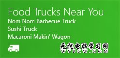 微軟在博客中以Contoso Food Trucks應用(上圖)為例講述如何為何其創建動態磁貼。開發者需要先為默認的動態磁貼選擇正方形或是矩形的模板,然后選擇最佳的圖片和內容填充磁貼。