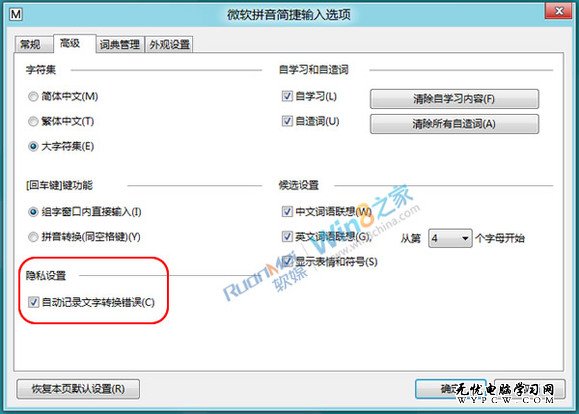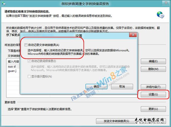 Win8下的微軟輸入法不停的提醒“文字轉換錯誤”,真是讓人奔潰了;其實在輸入法設置中是可以輕松取消掉這個錯誤報告的,不再煩人擾民。