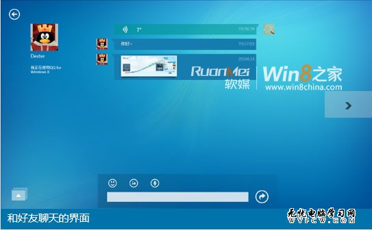 QQ for Windows8 預覽版是專門為Win8 Metro模式量身打造的QQ客戶端,在設計上充分利用了Metro UI和平板設備觸摸操作的特點,是為廣大Win8用戶提供的SNS工具。
