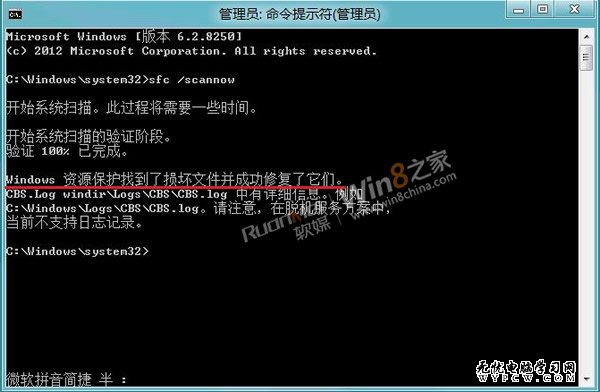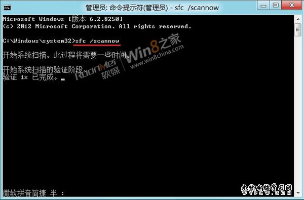 2.在命令提示符窗口中輸入sfc /scannow,按回車鍵。