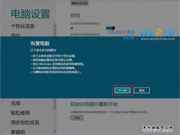 3.在電腦設置窗口中,點擊恢復電腦而不影響您的文件下的開始按鈕