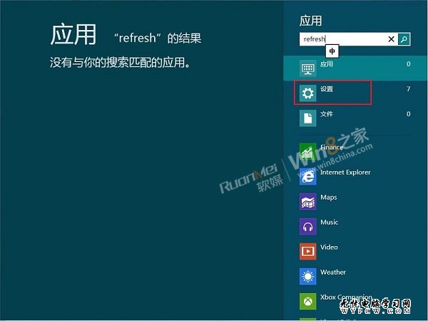 1.在開始界面中直接輸入refresh,系統會自動嘗試搜索并打開以下界面,點擊右側的設置