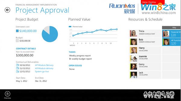 ZDNet提供Win8企業應用概念一些截圖,將在Convergence大會中予以演示。應用運行在Win8平板電腦的Metro界面: