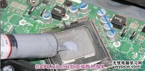 電腦死機有些時候很可能是由于CPU風扇散熱不好,我們可以在CPU散熱片上涂點硅膠,這個也不貴大概幾元錢就可以買一小瓶,自己涂在散熱片上就可!