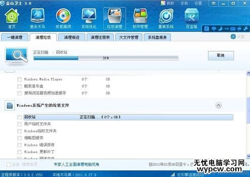 1、進入金山衛(wèi)士主界面進入【垃圾清理】