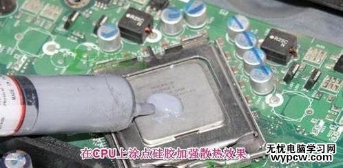 電腦死機有些時候很可能是由于CPU風扇散熱不好,我們可以在CPU散熱片上涂點硅膠,這個也不貴大概幾元錢就可以買一小瓶,自己涂在散熱片上就可!