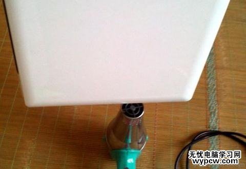 4.定期自己用吹風機除塵,將電腦出風口朝下,電吹風朝上對著出風口吹。