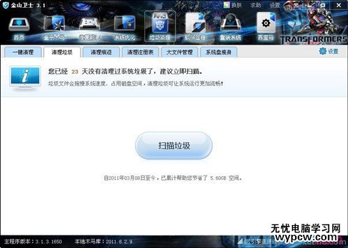 1、進(jìn)入金山衛(wèi)士主界面進(jìn)入【垃圾清理】