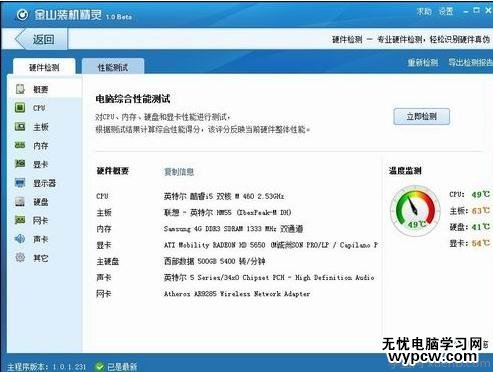 2.然后切換到“硬件檢測”功能,自動幫你檢測當前計算機的硬件設(shè)備詳細信息以及當前硬件設(shè)備當前溫度是多少,當您的顯硬件溫度達到危險值,溫度數(shù)字顏色會變得越來越紅。