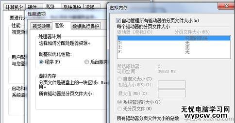 xp系統(tǒng):右擊我的電腦 屬性 高級 性能…… 那里 設置 高級 更改