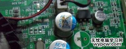 2、維修經驗表明,多半顯示器花屏都是顯卡的問題。我們首先關機斷電,打開機箱蓋。將顯卡拆下,首先看下顯示器電容有沒有鼓包。如果電容鼓起來就不要用了。