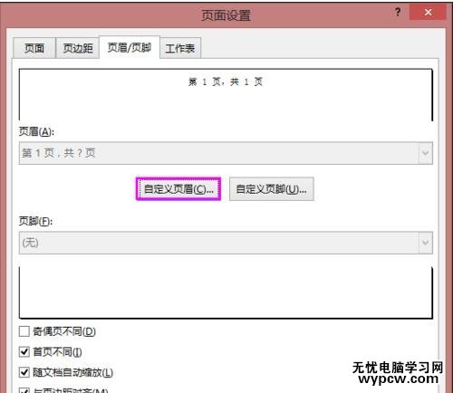 設置起始頁碼不是1步驟3:點擊“自定義頁眉”按鈕。