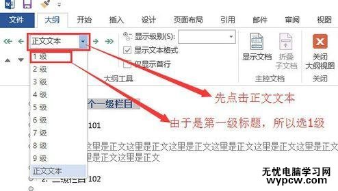 步驟九:然后點(diǎn)擊工具欄中的“正文文本”,在彈出的下拉列表中選擇“2級(jí)”。