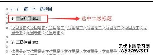 步驟八:接下來(lái)選中二級(jí)標(biāo)題。