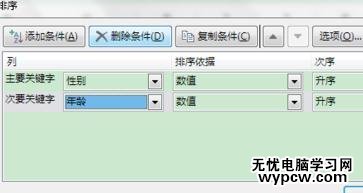 排序步驟5:然后通過【添加條件】來增加次要關(guān)鍵詞