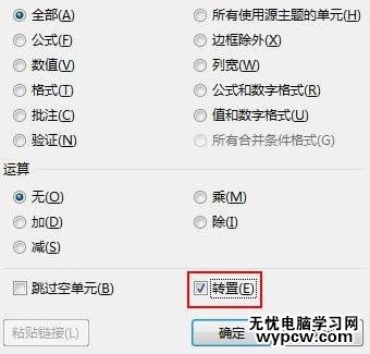 轉(zhuǎn)置步驟3:彈出選擇性粘貼界面,勾選轉(zhuǎn)置選項(xiàng)。