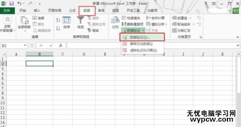 下拉菜單制作步驟2:打開Excel——【數據】——【數據驗證】