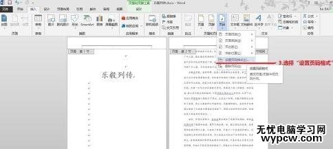 步驟五:然后選擇“插入”- “頁碼”- “設置頁碼格式”