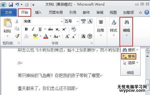 步驟一:在功能區(qū)點擊“開始”選項卡,選擇“編輯”區(qū)域點擊“替換”命令;