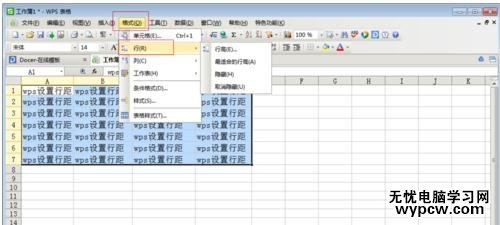 2點擊【格式】——【行】——【行高】,在行高設置框中輸入自己需要的行高就可以調整文字之間的間距了(這里的行高就是行距);