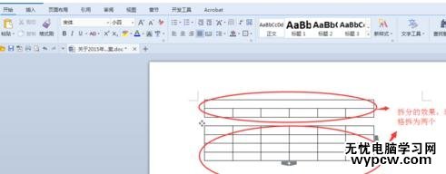 3.然后,我們來試試拆分表格,注意,拆分表格和拆分單元格是兩個概念。先將拆分表格,如果你想要把表格拆開,也是先選中你要從哪里進行拆,選中之后單擊鼠標右鍵,選擇拆分表格,或者在表格工具里選擇拆分表格即可。這里你要知道如果你選中的表格包含了表格的第一個單元格,是不能進行拆分的,若你選中的表格在第一行,擇不能按行拆分,如果在第一列,則不能按列拆分,如圖: