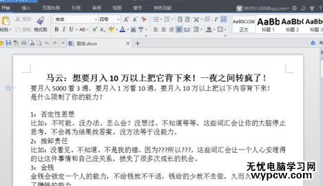 步驟2:在文檔中輸入我們要展示出來的文字。如圖所示;
