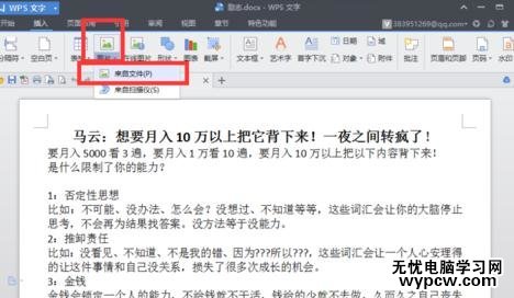 步驟3:文字輸入好以后。把鼠標的光標放在文字中間,點擊菜單欄的“插入”依次選擇“圖片”-->“來自文件”。如圖所示