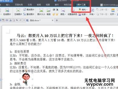 步驟5:圖片插入好以后,選中圖片,然后點擊菜單欄的”圖片工具“選項。如圖所示;