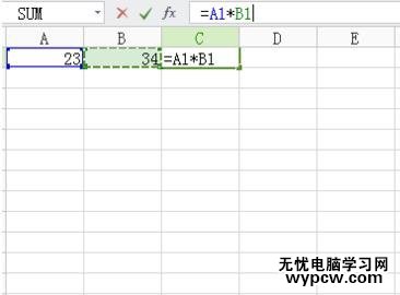按住ctrl鍵點選A1,再輸入*號,同樣的方法點選B1