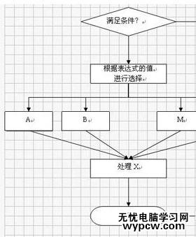 步驟6、連接符的使用很方便,這里不多說,只要注意不同情況下的使用對應(yīng)類型的連接符就是了。連接完了之后,使用繪圖工具欄上的“選擇對象”工具選中整個圖表,看看是否有沒有連接好的連接符。連接好了的連接符兩個端點應(yīng)該都是紅色,若是綠色,重連。肘形連接符的邊可能會經(jīng)過其它圖形的區(qū)域,這時候可以拖動它的黃色控制點,使它不與其它圖形重合。下面是連線后的效果: