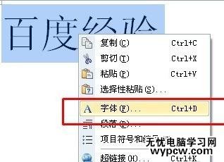 2、選中要加下劃線的內容,右鍵點擊鼠標。選中字體。