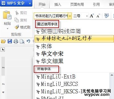 安裝完字體后,在WPS【字體】選項中即可進行選擇使用。
