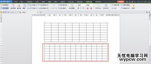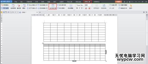 接下來選取要合并的單元格,此時在上方菜單欄了增加【表格工具】功能選項,下方可以看到【合并單元格】選項,如下圖所示。