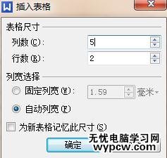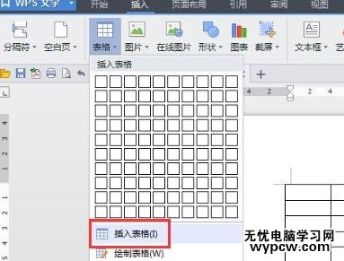 如果插入表格的行數或列數超過10,可以點擊下拉菜單里的【插入表格】選項,彈出插入表格窗口,如下圖所示。
