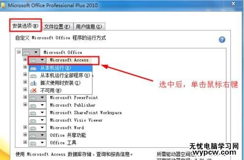 步驟五:比如:我們只想安裝常用的WORE、EXCELL、POWERPOINT等。以不安裝Microsoft Office Acess為例