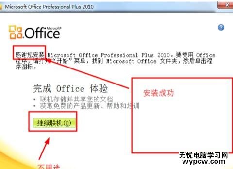 此窗口顯示:安裝成功,繼續(xù)聯(lián)機(jī)可以不選。