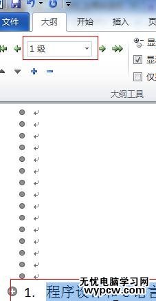 步驟二:這里可以看到,將大標題1、2、3、4、5設置為1級,選中標題文字,現設置為1級即可,同樣將1.1、1.2、2.1、2.2設置為2級,選中標題文字,現設置為2級即可,如果有三級,同樣操作即可!!