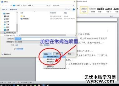 步驟四:點擊“常規選項”,出來的就是加密設置了,包括打開文檔和修改文檔的密碼設置。