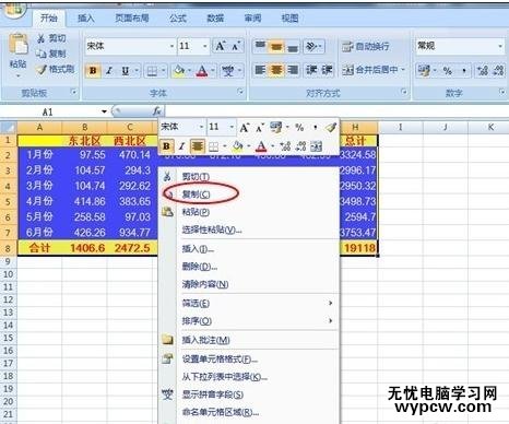 行列轉置步驟2:復制你選中的區域(按鍵盤上的CTRL+C或點右鍵選擇復制),如圖;